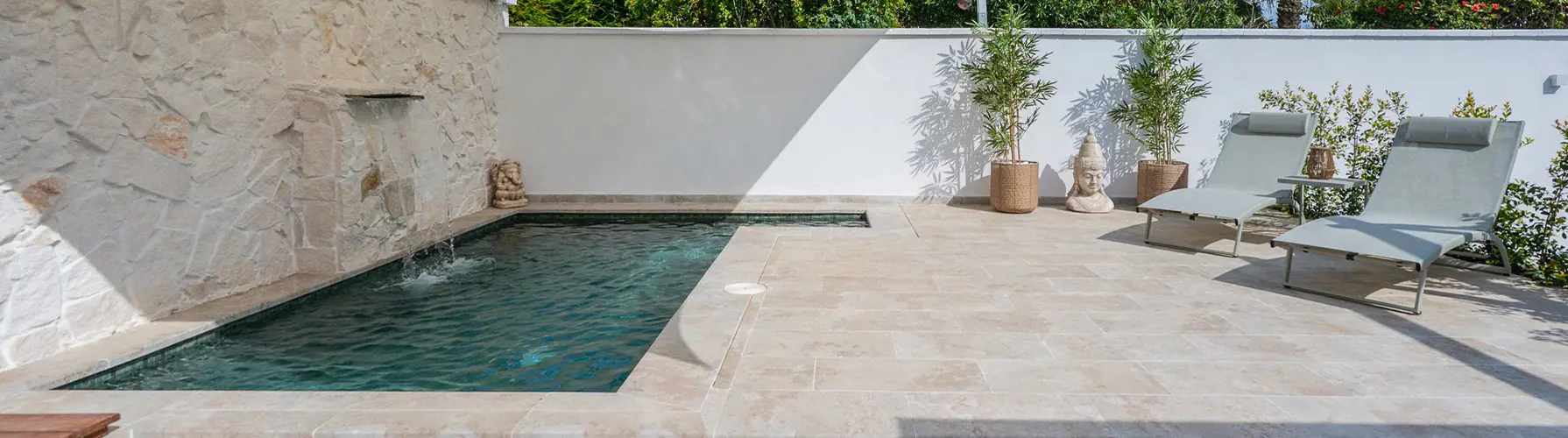 - Dans des ambiances tropicales ou méditerranéennes, les tons jade ou lagon s’accordent bien aux côtés d’un environnement de piscine en pierre beige, bois clair et végétation luxuriante.