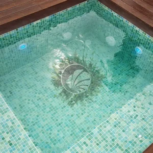 - Vert émeraude / olive / foncé : ils apportent de la profondeur visuelle et une allure plus élégante. Dans des piscines intérieures ou entourées de végétation, l’effet rappelle celui d’un étang naturel, calme et mystérieux.
